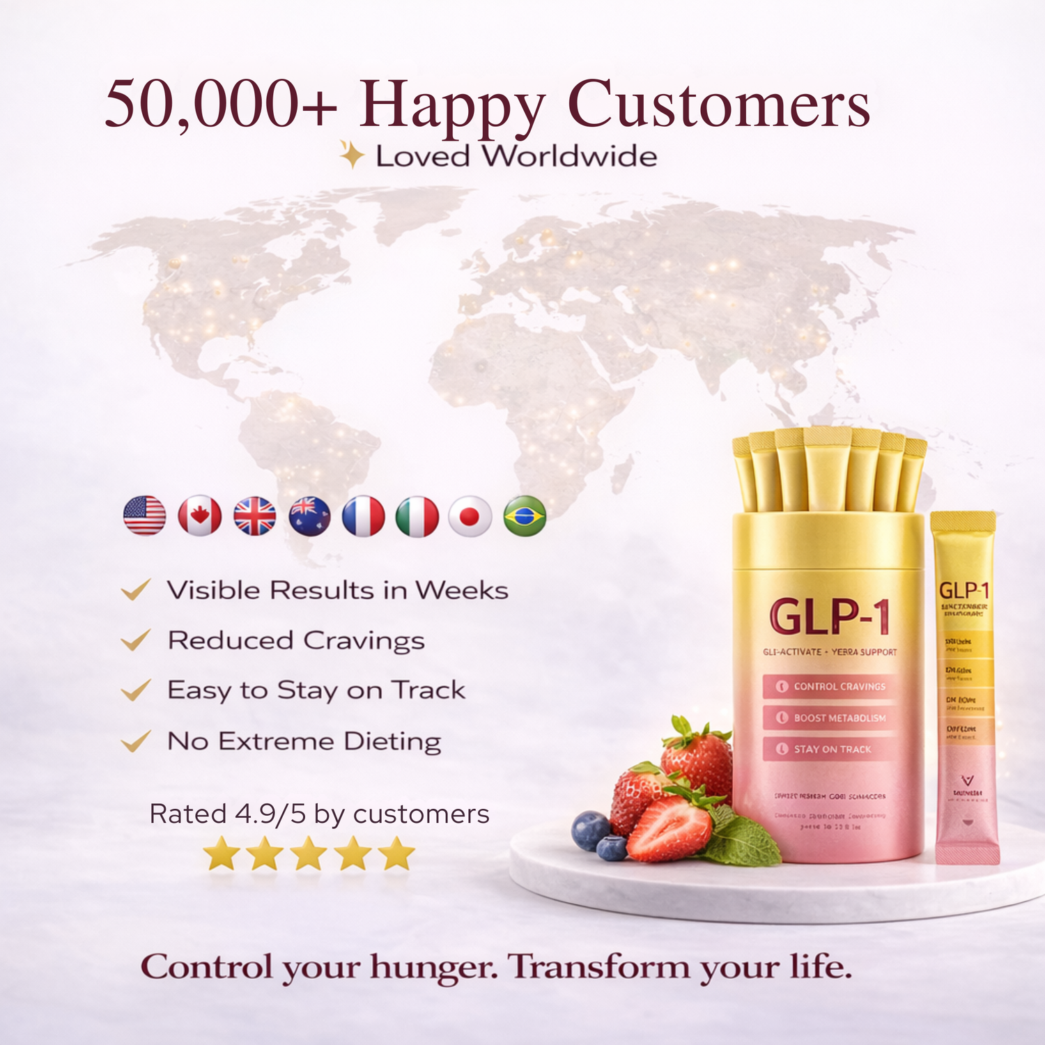 of participants reported reduced cravings after 12 weeks of daily use. 12% fewer calories consumed. Based on user surveys.