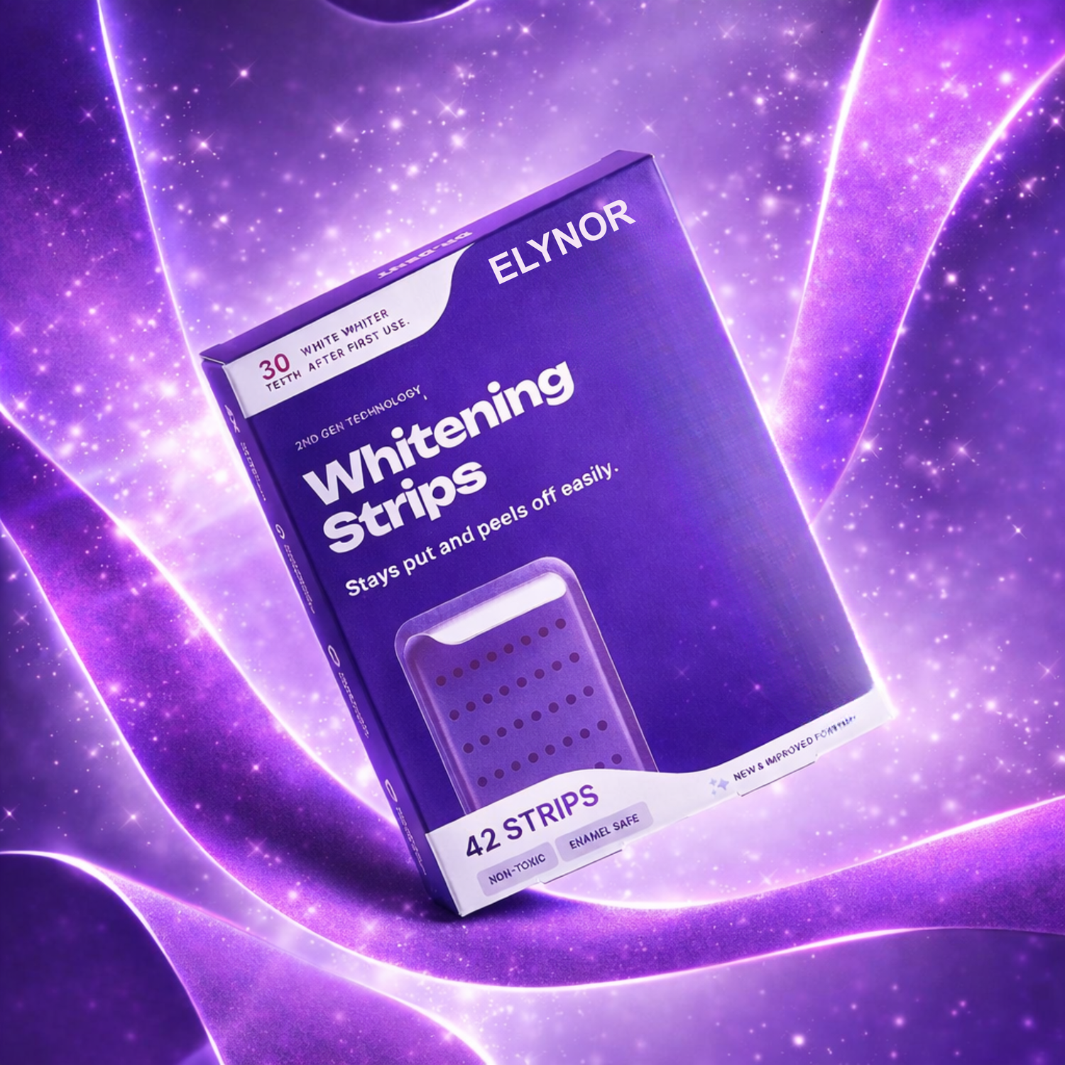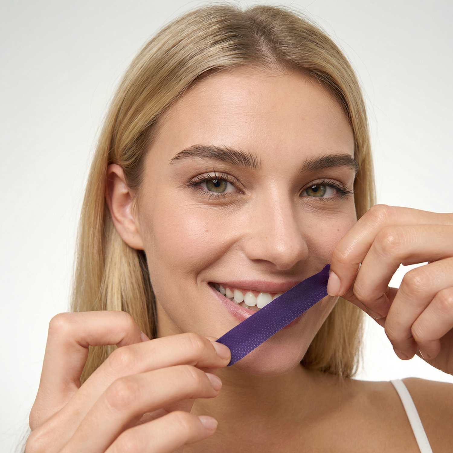 Purple color-correcting technology neutralizes yellow tones on contact. See visibly brighter teeth the moment you remove the strips.